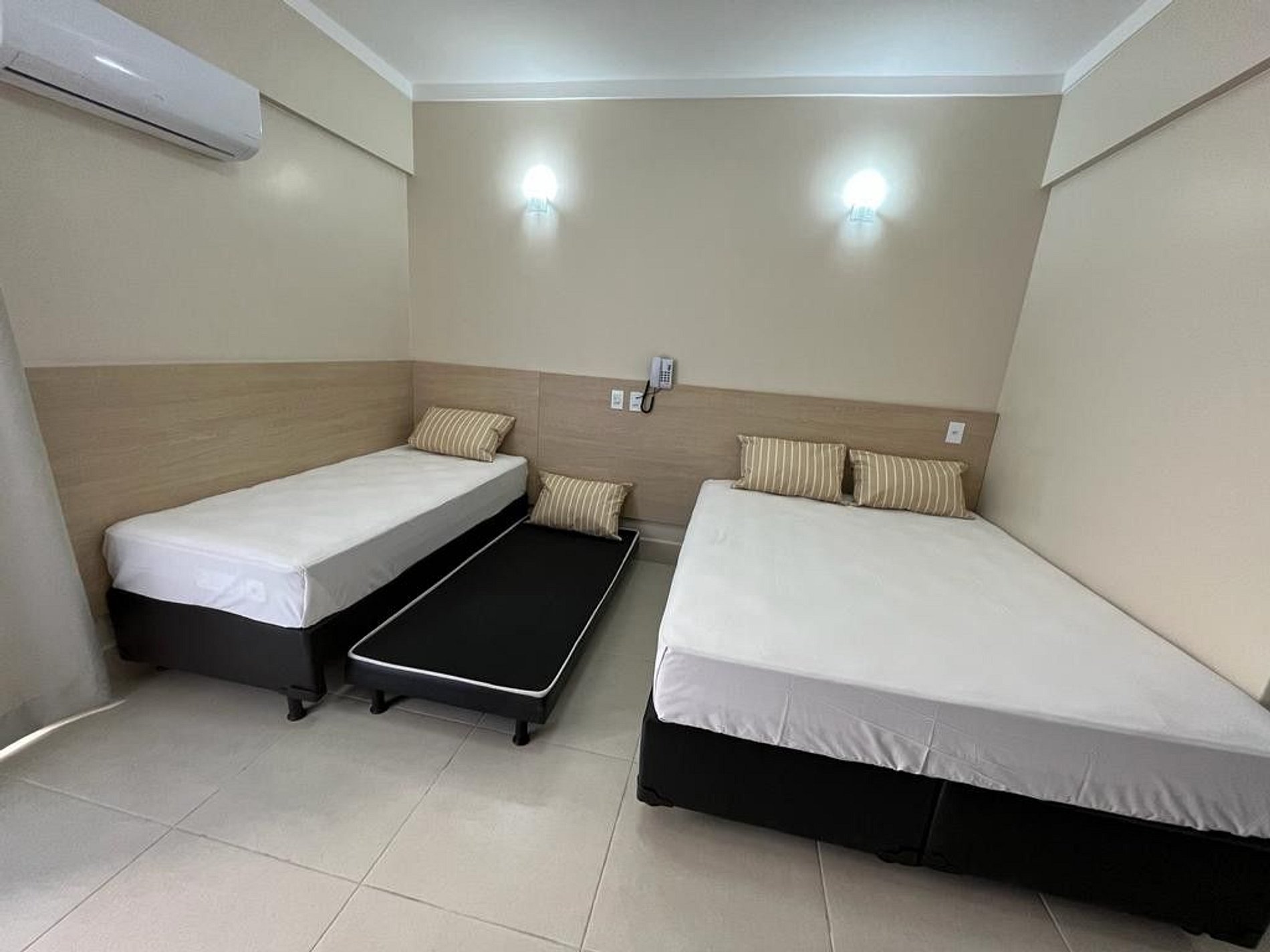 A acomodação oferece 1 cama de casal tamanho Queen, e 2 camas de solteiro sendo uma em cima e outra em baixo, banheiro privativo no quarto, refrigerador, micro-ondas, cofre, tv Smart 32¨.