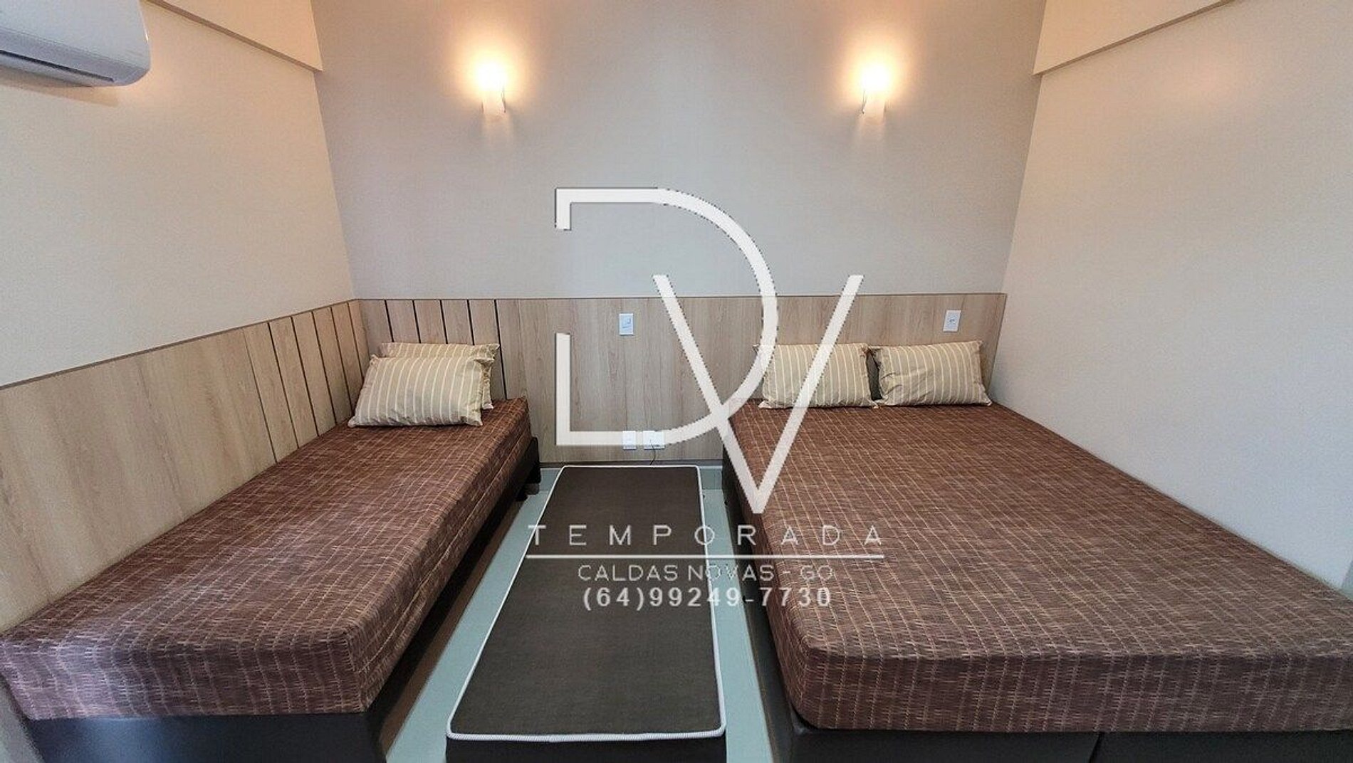 A acomodação oferece 1 cama de casal tamanho Queen, e 2 camas de solteiro sendo uma em cima e outra em baixo, banheiro privativo no quarto, refrigerador, micro-ondas, cofre, tv Smart 32¨.