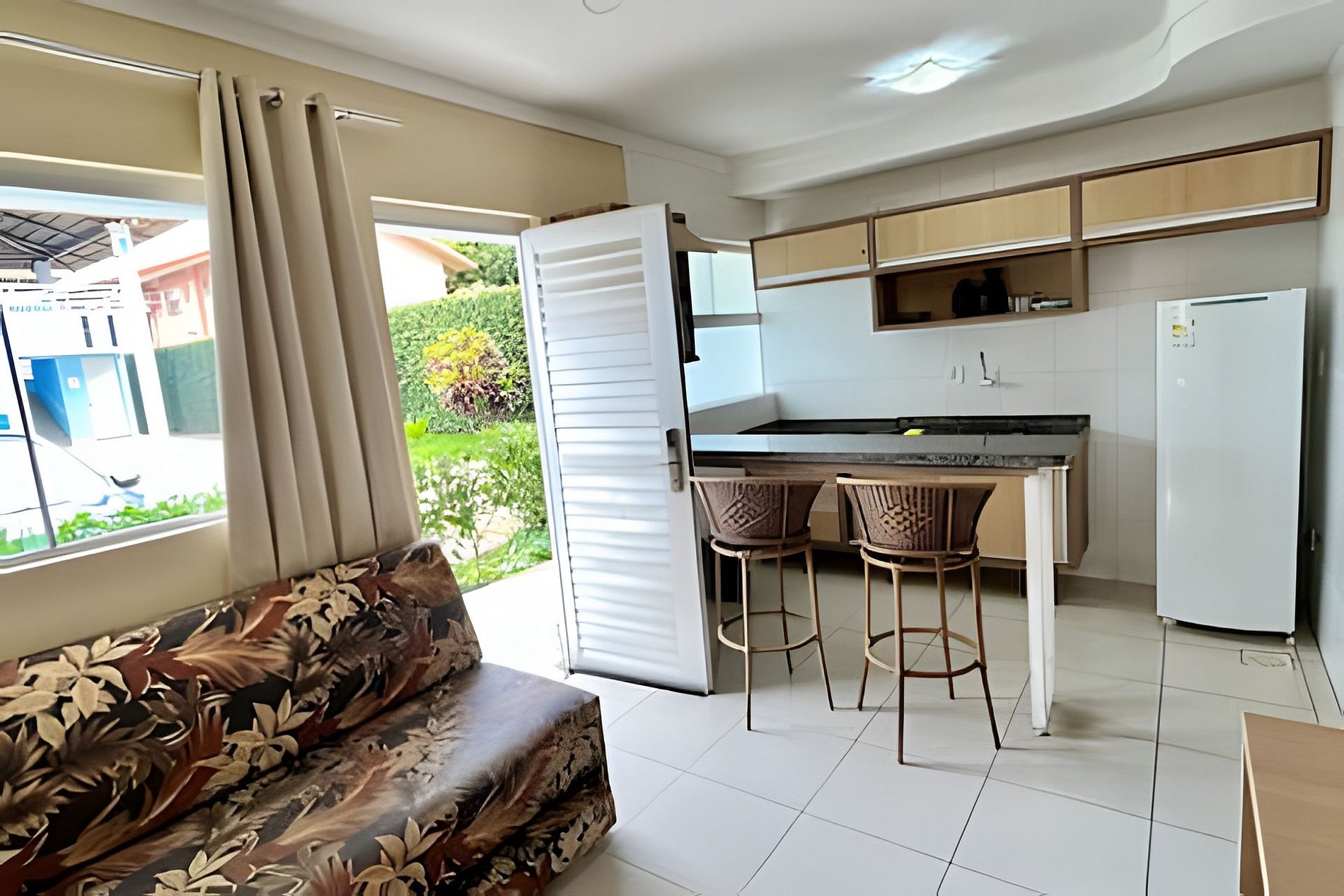 O apartamento conta com 1 cama de casa no primeiro ambiente, e um sofá-cama no segundo, tv de 32¨, uma mini cozinha com pia, frigobar, fogão elétrico e utensílios básicos, tudo para preparos rápido ou petiscos . ideal para família ou amigos.